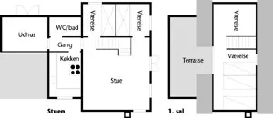 På førstesalen med loft til kip findes husets ”master bedroom” med dobbeltseng og udgang til en dejlig stor terrasse, der vender ud til klitterne og giver mulighed for at gå direkte ned til Vesterhavet og nyde solnedgangen.