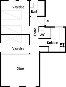 Lejligheden indeholder to soveværelser. Et med to enkeltsenge og et mindre med køjeseng. I lejligheden findes der barneseng til et mindre barn. Endvidere er der en hyggelig stue, køkken samt separat toilet og separat badeværelse.